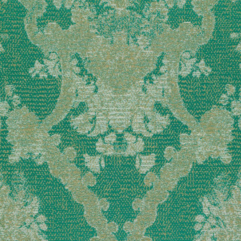Damasco Mirage von Rubelli aus Venedig ist ein klassicher Damast. Das klassische Muster, das einem Archivdokument aus dem 18. Jahrhundert entnommen ist, wurde mit einer Art Gitterwerk überlagert, das ihm eine besondere Leuchtkraft verleiht. Es handelt sich um den aufwändigsten der neuen Damastfamilie, was die Vielfalt der Bindungen angeht.