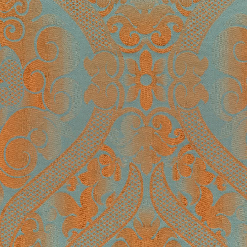 Damasco Pop von Rubelli Venedig ist ein Damast. Dank sehr lebendiger Farben präsentiert sich das gewundene Muster in einem neuen Gewand. Die zart schattierten Bindungen mildern die Kontraste, die schillernde Optik schafft reizvolle Kombinationen.
