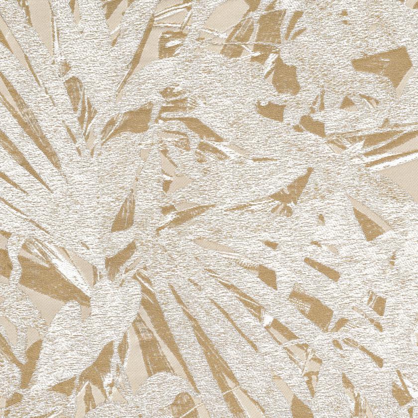 Java von Rubelli Venezia ist ein Spiel mit Licht und Schatten, mit der Überlagerung von glänzenden und matten Silhouetten, das an japanische Lacke erinnert. Pflanzliche Elemente mit anmutigen Formen, möglicherweise Kentia-Palmen, heben sich leuchtend im Vordergrund ab. Für den Einsatz bei Licht geeignet.