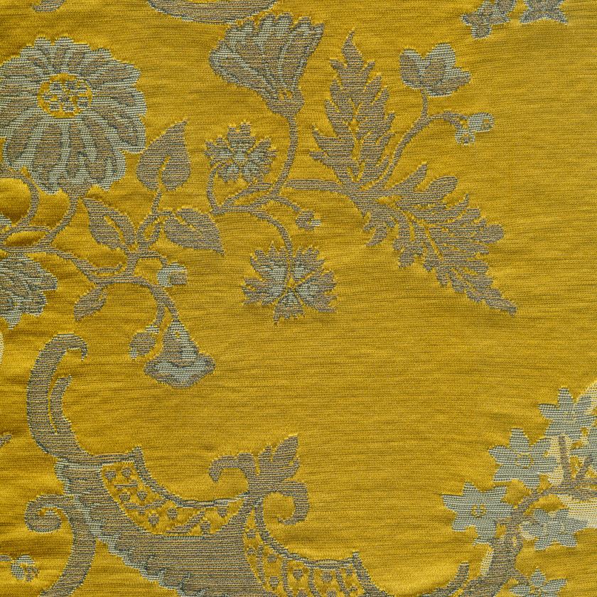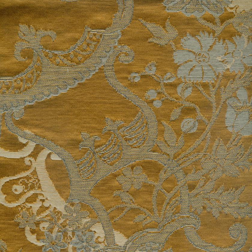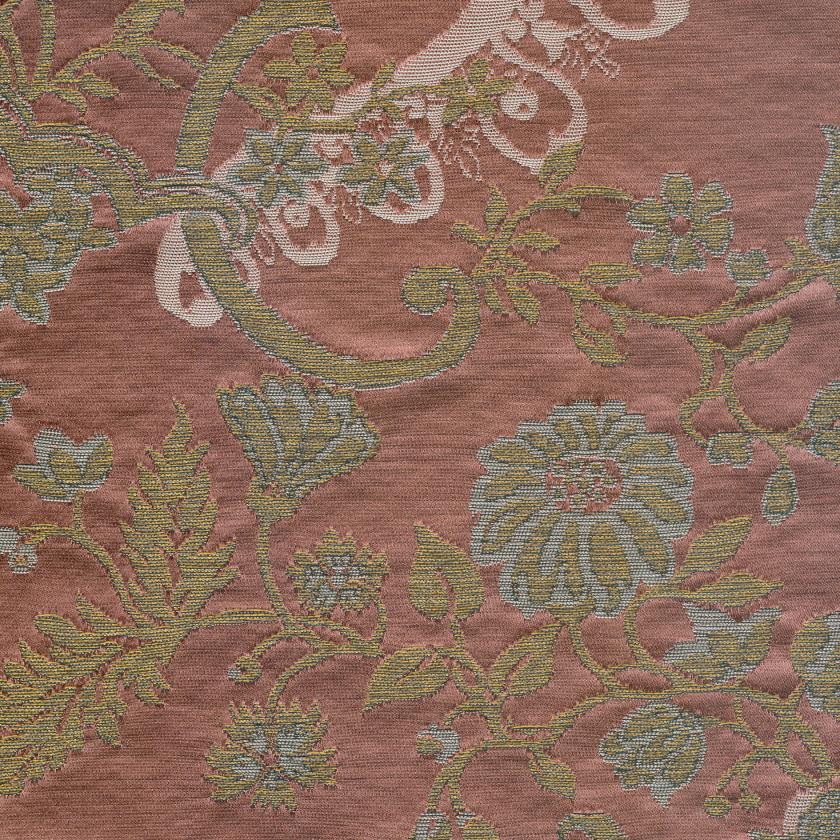 Die Vorlage für das Muster stammt aus dem 18. Jahrhundert: Ein Originalbrokat aus dem historischen Rubelli-Archiv diente als Inspiration. Die raffinierte Ornamentik im Stil des Rokoko wird durch den Einsatz mehrerer Metallfäden kunstvoll hervorgehoben. Das Ergebnis ist ein fein strukturierter Stoff mit luxuriöser Anmutung – ideal für dekorative Anwendungen mit leichter Beanspruchung, wie Vorhänge, Wandbespannungen oder Zierkissen.