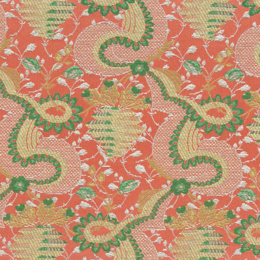 Petite Cherie aus dem Hause Rubelli Venezia ist ein Seidenlampas mit einem anmutigen Design. Es hat die Eleganz und den sanften Rhythmus von Textilkreationen aus der Mitte des achtzehnten Jahrhunderts. Von dem Originaldokument venezianischen Ursprungs, das im historischen Archiv aufbewahrt wird, hat das Stilbüro den Maßstab verkleinert und - wie bei einer Restaurierung - einen Teil des verlorenen Dokuments wiederhergestellt. Obwohl es keine metallischen Schussfäden gibt, wird die leuchtende Wirkung durch den weißen, glänzenden Schussfaden erzielt - immer hell und im Kontrast zum farbigen Hintergrund - der die Spitze mit einem für Ludwig XV. typischen Mäandermotiv gestaltet. Der Hintergrund und die Farbkombinationen sind frisch und außerhalb der klassischen Schemata.