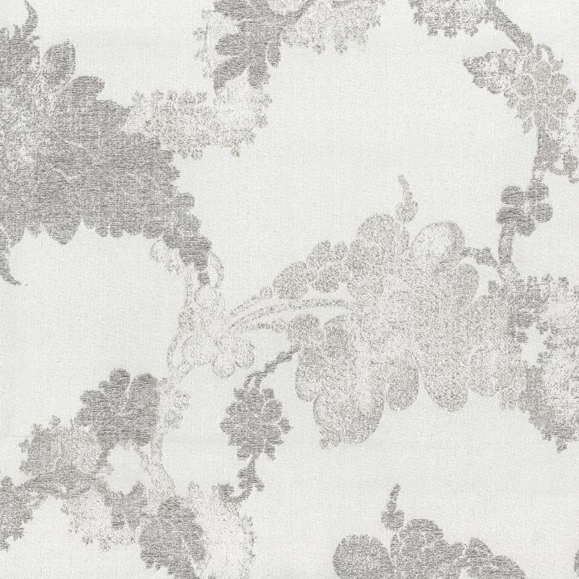 Das Design ist inspiriert von einem botanischen Muster aus der ersten Hälfte des 18. Jahrhunderts, entworfen von einem britischen Künstler im Stil der englischen Queen-Anne-Epoche. Die Kombination aus glänzenden Garnen, überlappenden Webstrukturen und feinen metallischen Akzenten verleiht dem Stoff eine exklusive und zugleich klassische Ausstrahlung.