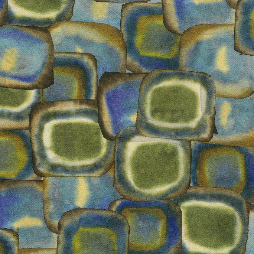 Rockstar vom venzizianischem Textilverlag Rubelli ist gedruckt nach einem Aquarellmuster, das von Halbedelsteinen inspiriert ist, die im Stoff bunte Formen mit unregelmäßigen, vage geometrischen Konturen entstehen lassen. Ein Deko & Poslterstoff mit einer weichen Oberfläche und ein traumhaften Haptik.
