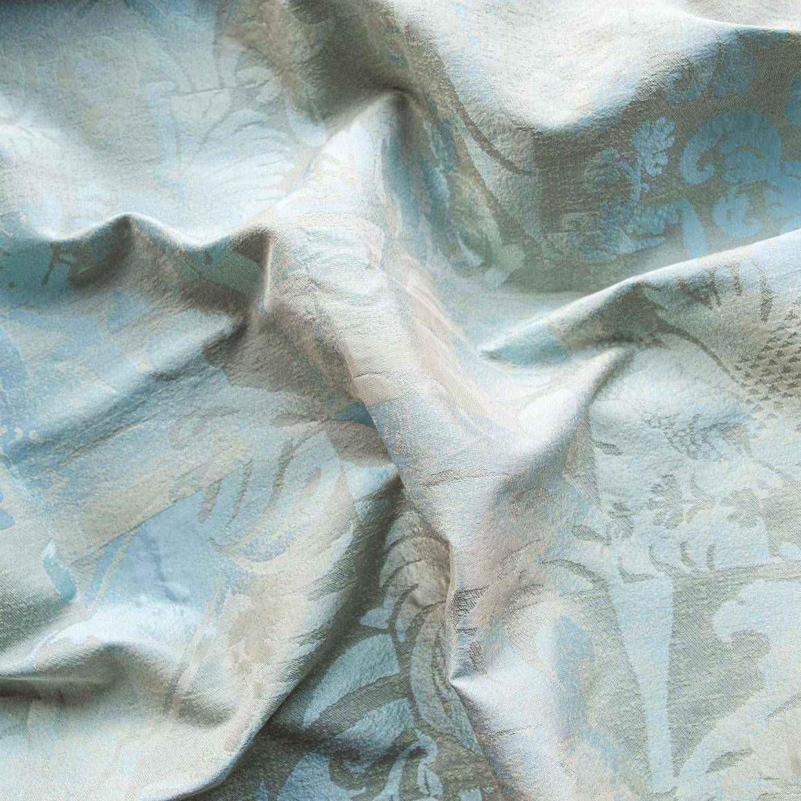 Silkglass von Rubelli Venezia ist eine Komposition aus Damast-Mosaiksteinen aus verschiedenen Epochen (17. und 18. Jahrhundert), die im historischen Archiv aufbewahrt wird. Durch das Zusammenfügen kleiner Fragmente entsteht ein neues, seidiges Muster, elegant und farbig wie mundgeblasenes Glas. Ein "glasartiger" Stoff, der dank der Verwendung besonderer Garne und spezifischer Verfahren in der Lage ist, das Schillern und die fast unkörperliche Transparenz von Artefakten aus Muranoglas und insbesondere der künstlerischen Glaskreationen des venezianischen Architekten und Designers Carlo Scarpa hervorzurufen.