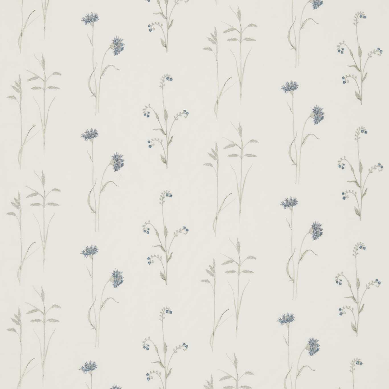Dekorativer Stoff Meadow Grasses der Marke Sanderson besteht aus 45 % Leinen, 35 % Baumwolle und 20 % Viskose und hat eine Breite von 130 cm. Dieses Material eignet sich hervorragend für Vorhänge und Dekorationselemente und ist mit einem Muster aus Grashalmen und Blumen verziert.