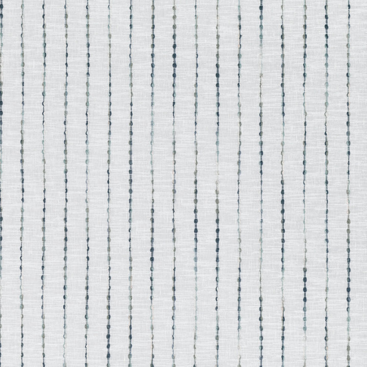 Das Muster erinnert an einen weichen Farbverlauf oder wellenförmige Streifen in feinen Nuancen von Leinen, Sandgrau und verwaschenem Blau. Der Stoff fühlt sich zart an, fällt geschmeidig und lässt sanftes Licht durch, ohne zu blenden – ideal für Räume mit ruhiger, natürlicher Atmosphäre.