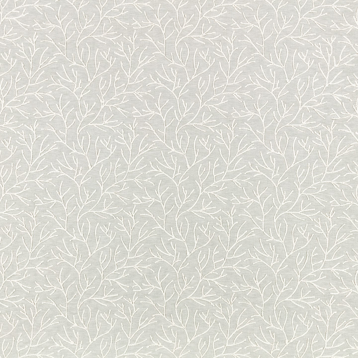 Cerelia wirkt wie eine traditionelle Kreppstickerei, da die Stickerei auf dem sanft strukturierten Stoff liegt. Die Kordelstickerei umreißt wuchernde Wedel und präsentiert sich in einer Palette mit Tiefe, da sich vielseitige Neutraltöne mit einem erdigen Grün und einem tiefen Blau abwechseln.