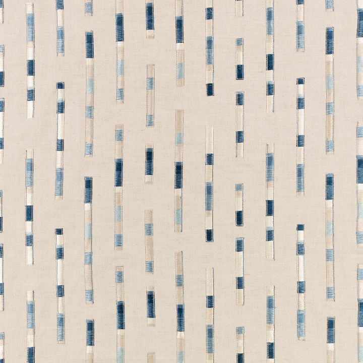 Inspiriert von der authentischen Natur der im Garten gepflückten Blumensträuße, präsentiert Abloom eine Vielzahl von äußerst charmanten, ausdrucksstarken Stickereistoffen. Bei Elwood bilden gestickte Linien in verschiedenen Längen und Farben eine elegante, geometrische Aussage in der Struktur eines Streifens auf einem subtil strukturierten Stoff.
