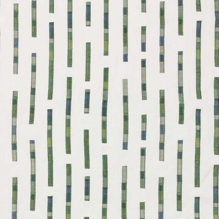 Inspiriert von der authentischen Natur der im Garten gepflückten Blumensträuße, präsentiert Abloom eine Vielzahl von äußerst charmanten, ausdrucksstarken Stickereistoffen. Bei Elwood bilden gestickte Linien in verschiedenen Längen und Farben eine elegante, geometrische Aussage in der Struktur eines Streifens auf einem subtil strukturierten Stoff.