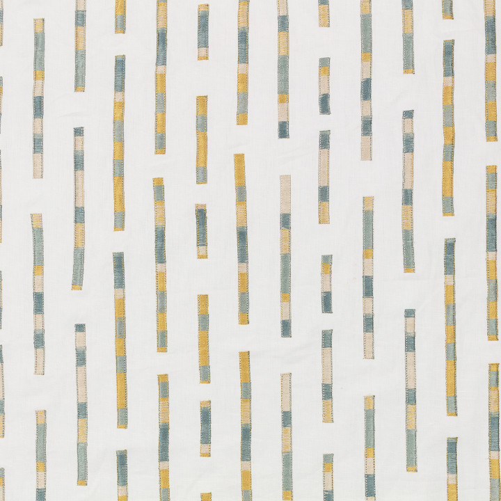 Inspiriert von der authentischen Natur der im Garten gepflückten Blumensträuße, präsentiert Abloom eine Vielzahl von äußerst charmanten, ausdrucksstarken Stickereistoffen. Bei Elwood bilden gestickte Linien in verschiedenen Längen und Farben eine elegante, geometrische Aussage in der Struktur eines Streifens auf einem subtil strukturierten Stoff.