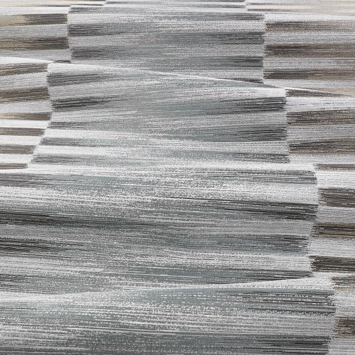 Farbblöcke fügen sich zu einem modernen abstrakten Streifen zusammen, der von Gesteinsschichten inspiriert ist. Dieses ausdrucksstarke Design mit einem Hauch von Metallic sorgt für einen auffälligen Faltenwurf.