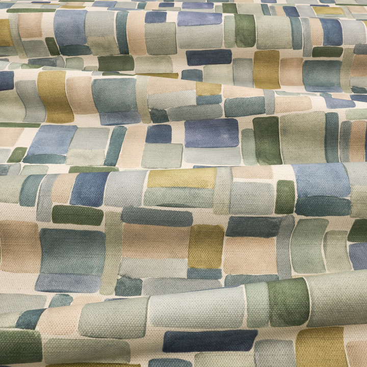 Der Stoff Villa Nova Nira ist ein expressives Material, hergestellt aus 60 % Baumwolle, 28 % Viskose und 12 % Leinen, mit einer Breite von 137 cm — inspiriert von der Aussicht auf ländliche Landschaften aus der Vogelperspektive. Das geometrische Muster aus ineinandergreifenden Blöcken ist in einer lebendigen Palette moderner Farben auf einer strukturierten Baumwoll-Leinen-Basis gestaltet. Durch den sanften Wasserfarbeneffekt und die intensive Farbauswahl eignet sich Nira perfekt für die Gestaltung von Inneneinrichtungen wie Polsterungen, Vorhängen oder Kissen.