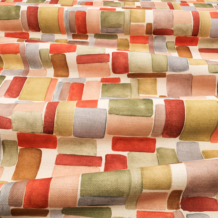 Der Stoff Villa Nova Nira ist ein expressives Material, hergestellt aus 60 % Baumwolle, 28 % Viskose und 12 % Leinen, mit einer Breite von 137 cm — inspiriert von der Aussicht auf ländliche Landschaften aus der Vogelperspektive. Das geometrische Muster aus ineinandergreifenden Blöcken ist in einer lebendigen Palette moderner Farben auf einer strukturierten Baumwoll-Leinen-Basis gestaltet. Durch den sanften Wasserfarbeneffekt und die intensive Farbauswahl eignet sich Nira perfekt für die Gestaltung von Inneneinrichtungen wie Polsterungen, Vorhängen oder Kissen.
