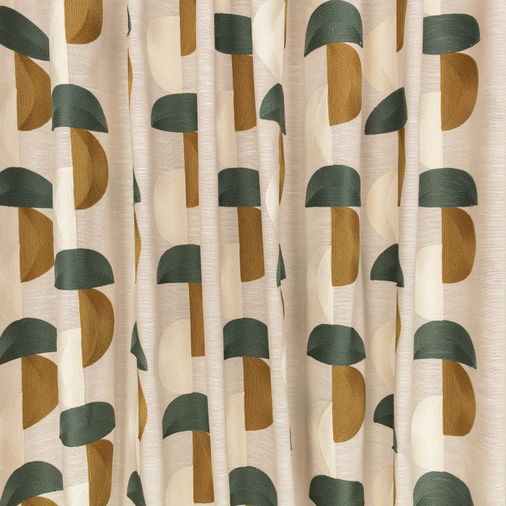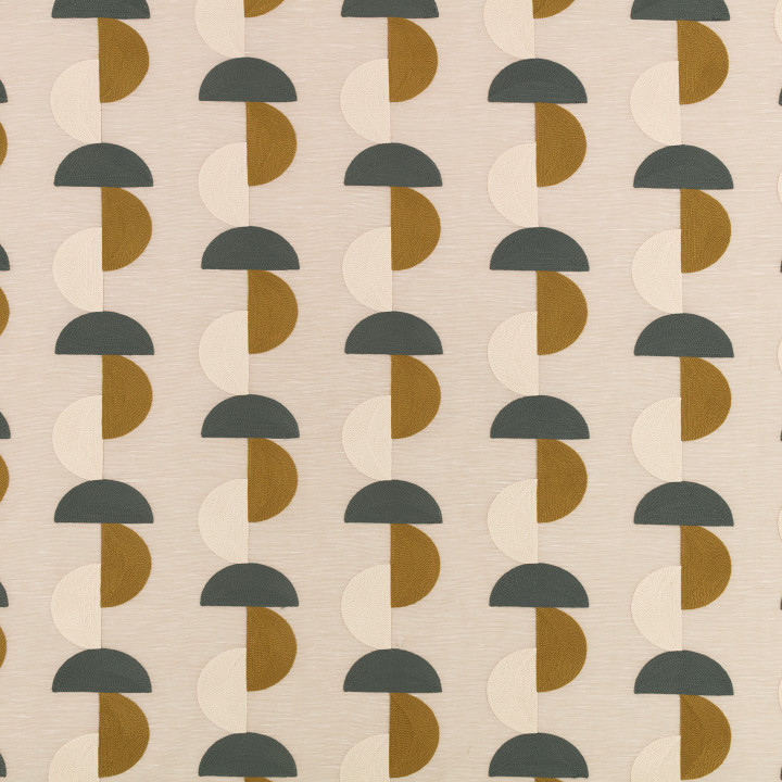 Der Stoff Villa Nova Omri ist eine lebendige Dekollösung im modernen geometrischen Stil. Dieses Material aus 100 % Polyester, 296 cm breit, ist mit großen Halbkreisen verziert, die in der Crewel-Sticktechnik ausgeführt sind und ein dynamisches vertikales Muster schaffen.