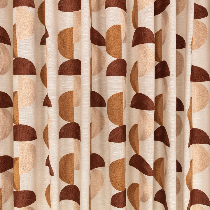 Der Stoff Villa Nova Omri ist eine lebendige Dekollösung im modernen geometrischen Stil. Dieses Material aus 100 % Polyester, 296 cm breit, ist mit großen Halbkreisen verziert, die in der Crewel-Sticktechnik ausgeführt sind und ein dynamisches vertikales Muster schaffen.