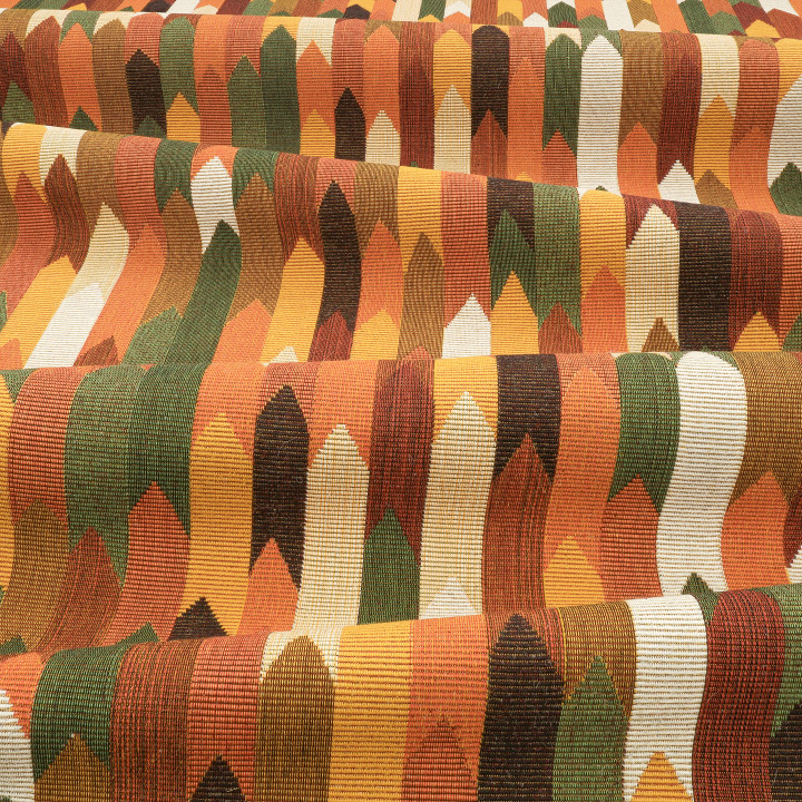 Arraz von Zinc ist ein Deko & Polsterstoff aus England. Dieser pfeilgerade, dicke Dekostoff zeigt ein kühnes geometrisches Muster in einer Reihe von auffälligen Farben. Arraz fühlt sich bewusst rustikal an und hat eine raue, fast sisalartige, starre Textur, die einen Hauch von Rauheit in die Kollektion bringt. Die Verwedung feiner Garne wie baumwolle, Wolle und Alpaka machen den Stoff so besonders.
