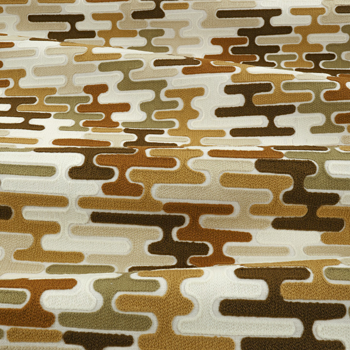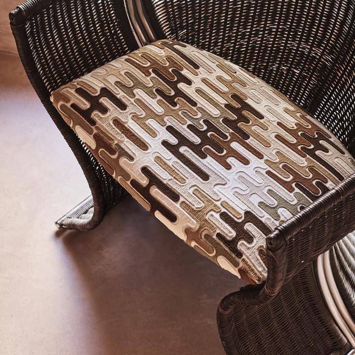 Baldessari von ZINC zeigt kurvige Formen der Kreischstickerei fügen sich wie Teile eines Puzzles zusammen, um dieses moderne und doch rustikale Design zu schaffen, bei dem durchdachte Farbkombinationen den Unterschied ausmachen.