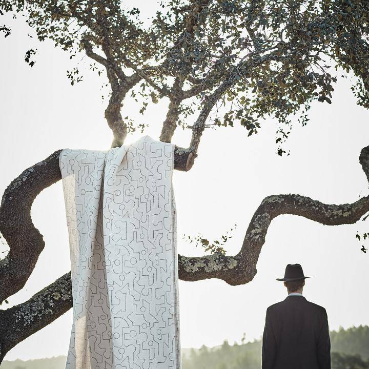 Braque von ZINC - Naiv von Hand gezeichnet, erscheint ein modernes Puzzle, dessen feine Umrisse großzügig über dieses Baumwolltuch fließen.