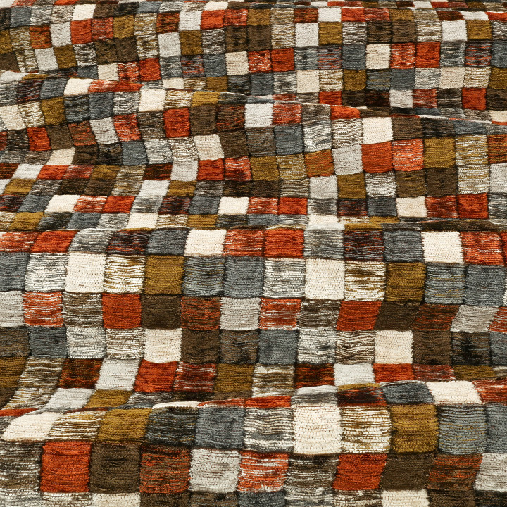 Der Deko & Polsterstoff Camden von Zinc. Inspiriert von den Kacheln eines Swimmingpools, ist Campden, ausgesprochen mit einem stummen „p“, eine Decke aus bunten Quadraten, die ein Mosaikdesign bilden. Der Chenilleflor sorgt dafür, dass Campden alles andere als flach ist, denn er wellt sich über die Oberfläche und verleiht dem Stoff ein gestepptes, erhabenes Aussehen.