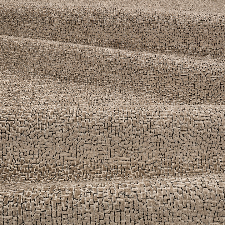 Estagnol von ZINC - auf den ersten Blick könnte Estagnol leicht mit einem Jacquard verwechselt werden; erst bei näherer Betrachtung wird das kleinräumige Labyrinth der Stickerei, das sich durch einen verwöhnenden Samtboden bahnt, sichtbar.