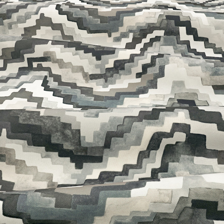 Falconetto by ZINC began its journey as a decorative velvet in our Pantelleria collection before transforming into a monochrome masterpiece in the Chiaroscuro collection. Falconetto's ziggurat was originally hand-painted with delicate watercolors to give this otherwise graphic print a diffused appearance.