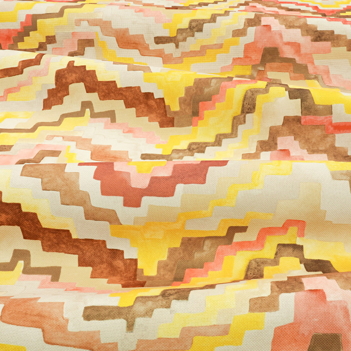 Falconetto by ZINC began its journey as a decorative velvet in our Pantelleria collection before transforming into a monochrome masterpiece in the Chiaroscuro collection. Falconetto's ziggurat was originally hand-painted with delicate watercolors to give this otherwise graphic print a diffused appearance.