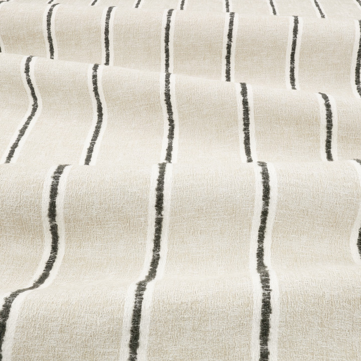 Ghibli by ZINC is a linen curtain fabric - Earthy, rustic and relaxed - this characterful fabric with its striking stripes is not afraid to celebrate its perfectly imperfect details, with layers of organic stitching that characterize the fabric. Our Levante weave is the plain fabric to match.