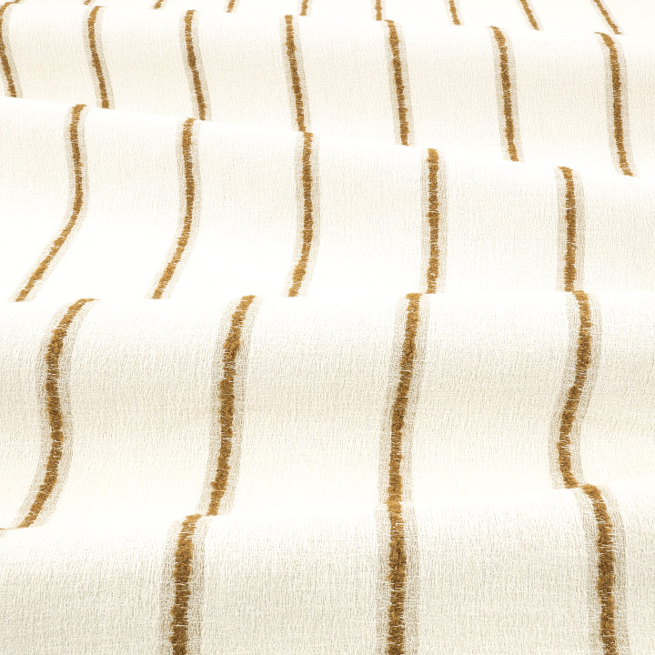 Ghibli by ZINC is a linen curtain fabric - Earthy, rustic and relaxed - this characterful fabric with its striking stripes is not afraid to celebrate its perfectly imperfect details, with layers of organic stitching that characterize the fabric. Our Levante weave is the plain fabric to match.