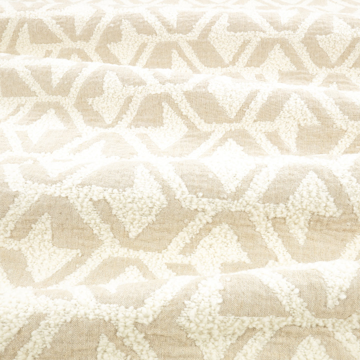 Der Deko & Polsterstoff Hex von ZINC ist ein stark strukturierter Wollbouclé erzeugt ein detailliertes, sechseckiges Muster auf einem Leinen-Taschengewebe mit einem sehr klobigen Griff. Diese rustikalen Qualitäten gipfeln in einem entspannten, handgefertigten Erscheinungsbild mit zufälligen Bouclé-Sprenkeln auf dem Leinengrund, was den Charakter des Stoffes nur noch verstärkt. Durch die Verwedung hochwergier Garne ensteht ein wundervoller schwerer Dekostoff mit Charakter und eine Statement für die Einrrichtung.