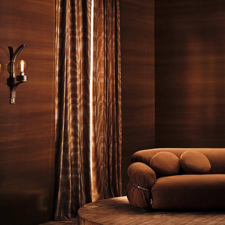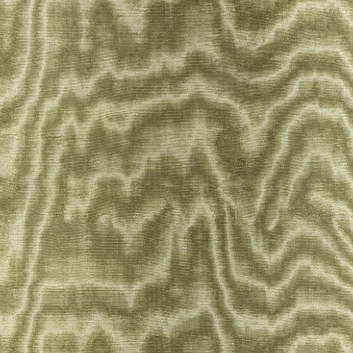 Der einzigartige Jacopo, ein weicher Chenille-Stoff mit einem atemberaubenden, großflächigen Moiré-Dessin, das im Digitaldruckverfahren hergestellt wird und dennoch die Wirkung eines traditionellen gewebten Moirés hat.