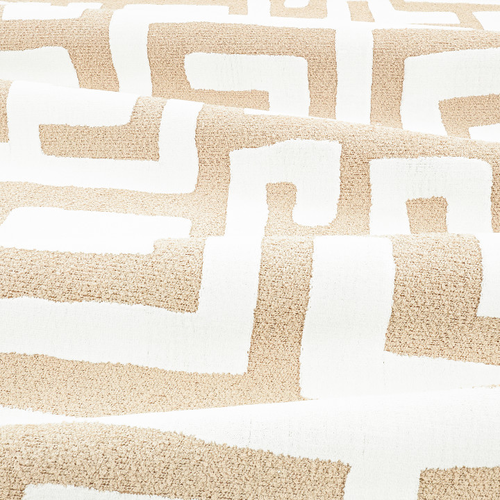 Das unverwechselbare Design von Kuba Cay, eine Ikone von Zinc, kehrt als Outdoor-Stoff zurück. Ein Bouclé-Grund und ein Samtflor verleihen diesem rustikalen, kongolesisch inspirierten Design ein wenig Schwung.