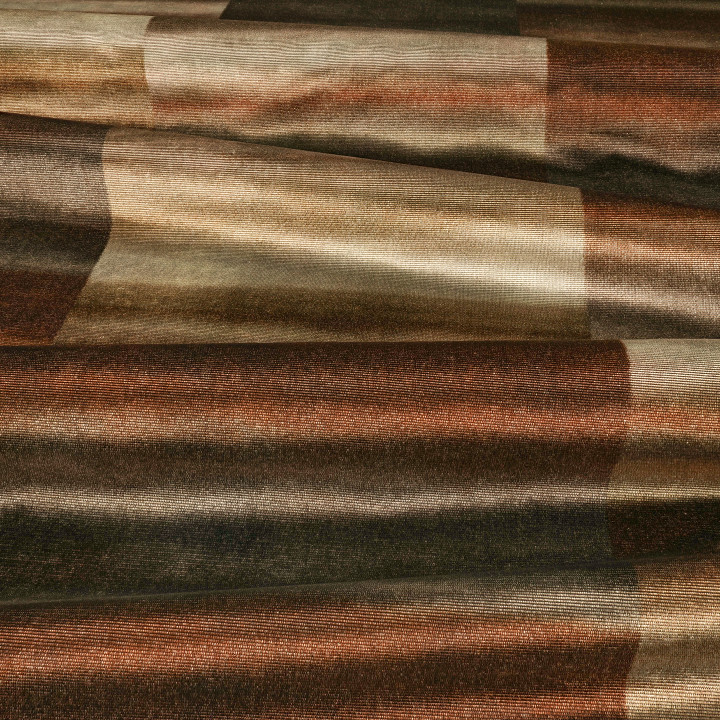 Marisa ein Polsterstoff von ZINC aus weichem Samt gerfertigt. Man könnte meinen, dass man dieses Design schon einmal gesehen hat. Inspiriert von der Zorelli-Seidentapete aus der Cazenove-Kollektion, zeichnet sich dieser bedruckte Jacquard-Samt durch eine bewusste Bänderung komplementärer Farben aus, die ein diffuses Streifendesign mit einer einzigartigen Ästhetik schaffen. Der Glanz des Flors lässt die Opulenz der Seide wieder aufleben und verleiht ihr eine willkommene Weichheit.