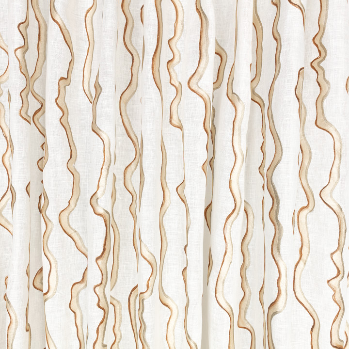 Notus by ZINC is a work of linen art. Hand-painted lines meander organically across this pure linen fabric, whose metallic sheen catches the light as it moves. Notus is a bi-directional quality, meaning it can be used both vertically and horizontally.