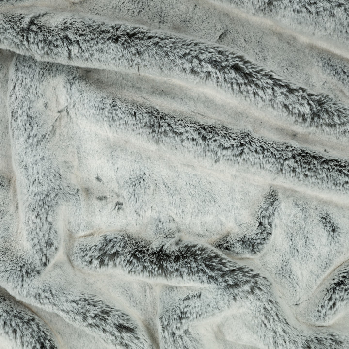 Rex von ZINC ist ein prächtiges Kunstfell mit dunkelgrauem, schieferfarbenem Grund, aufgehellt durch eine dichte Decke aus hellen, silbergrauen Spitzen. Extrem weich und flauschig im Griff.