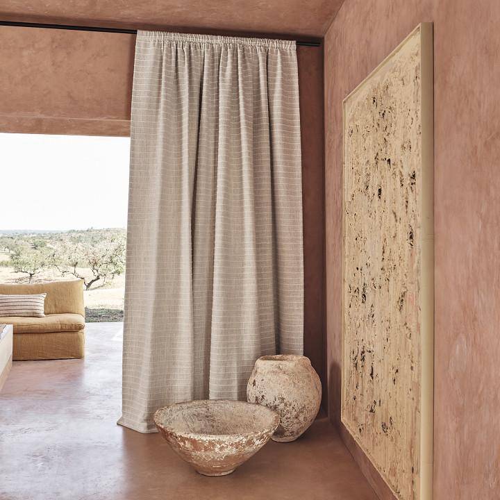 Roccapina von ZINC ist rustikal in Aussehen und Haptik, dieses kühne aber einfache Streifendesign mit Stich-Effekt und dreidimensionaler Qualität webt sich durch diesen klobigen Stoff.