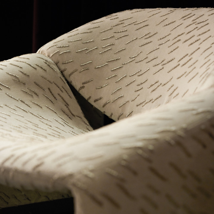 Architektur und Textilien vereinen sich in dieser innovativen Zusammenarbeit zwischen Zinc Textile und dem Antwerpener Architekturbüro Dieter Vander Velpen Architects, dessen bemerkenswertes Portfolio maßgeschneiderte Projekte weltweit umfasst. In diesem Zusammenspiel von Oberfläche und Struktur prägten die rhythmischen Muster natürlicher Materialien die organischen Formen und die spielerische Mischung haptischer Qualitäten, darunter Samt und Jacquards, die mit dem Kontrast von Matt und Glanz spielen.