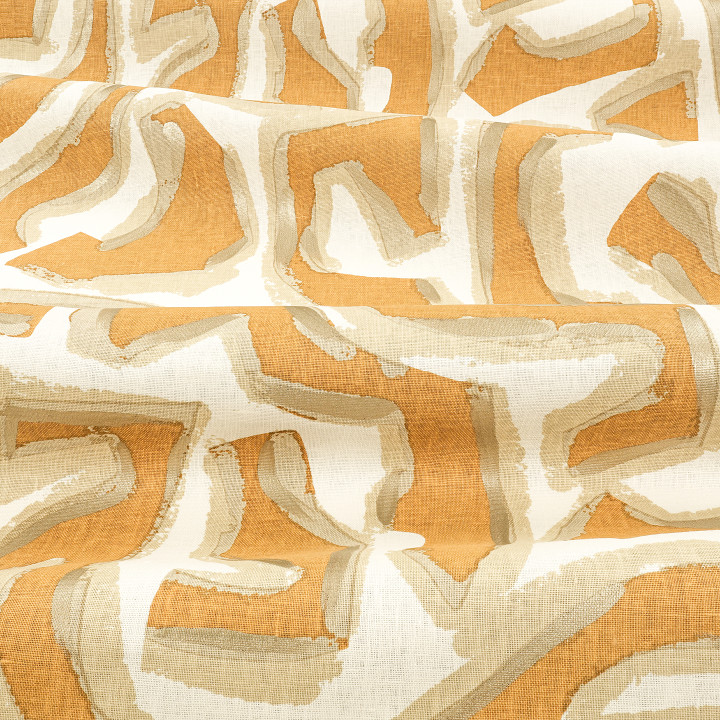 Sonhaoras von ZINC - die handgeblockte Optik und das organische Gefühl verleihen diesem abstrakten Design, das auf 100% Leinen gedruckt ist und mit handbemalten metallischen Details versehen ist, einen Hauch von Entspannung.