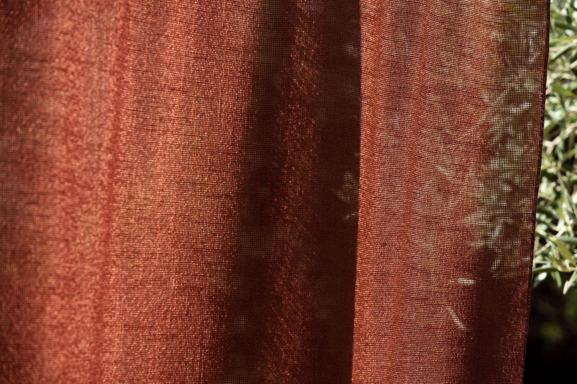 Benu Earth Recycled FR ist ein weich fließender, raumhoher halbtransparenter Vorhang. Seine offene Leinwandbindung verleiht ihm einen groben Charakter. Er ist zu 100% aus post-industriell recyceltem Garn gewebt.