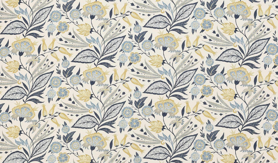 Dieses attraktive, stilisierte Blumendesign wurde einem antiken Dokument nachempfunden und hat eine indianische Anmutung und einen Blockdruck-Look. Digitaler Druck.