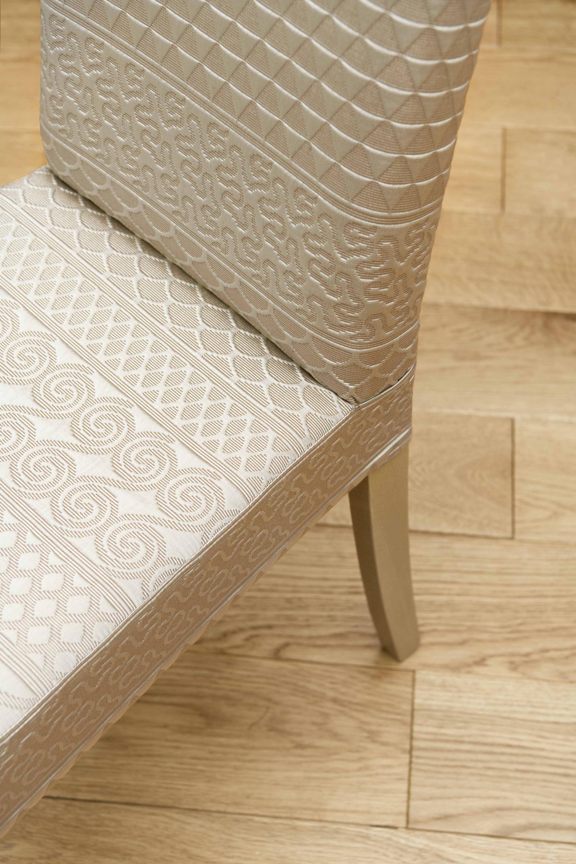 Das markante Reliefmuster in gesteppter Cordoba-Lederoptik verleiht dem Stoff eine unverwechselbare Tiefe und Ausdruckskraft. Inspiriert von ikonischen Modekreationen des berühmten Designers, schafft dieses Dessin eine spannende Verbindung zwischen Fashion und Interior Design.