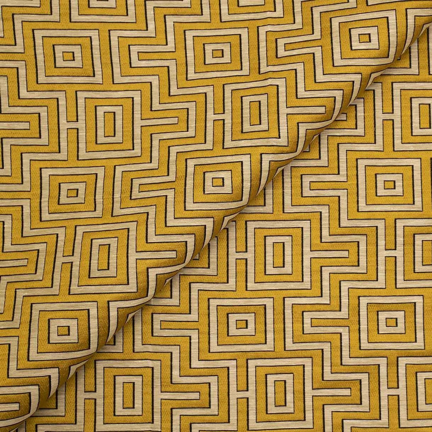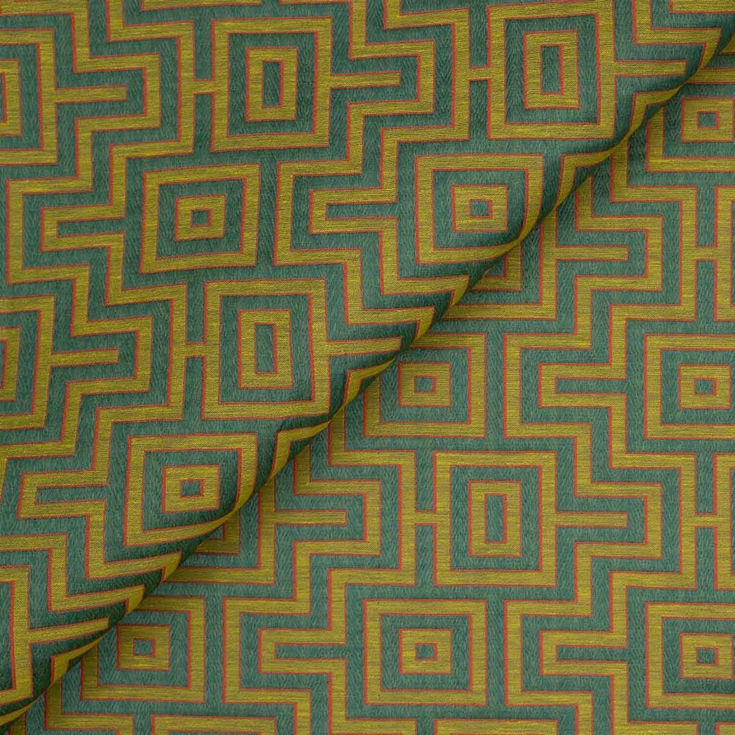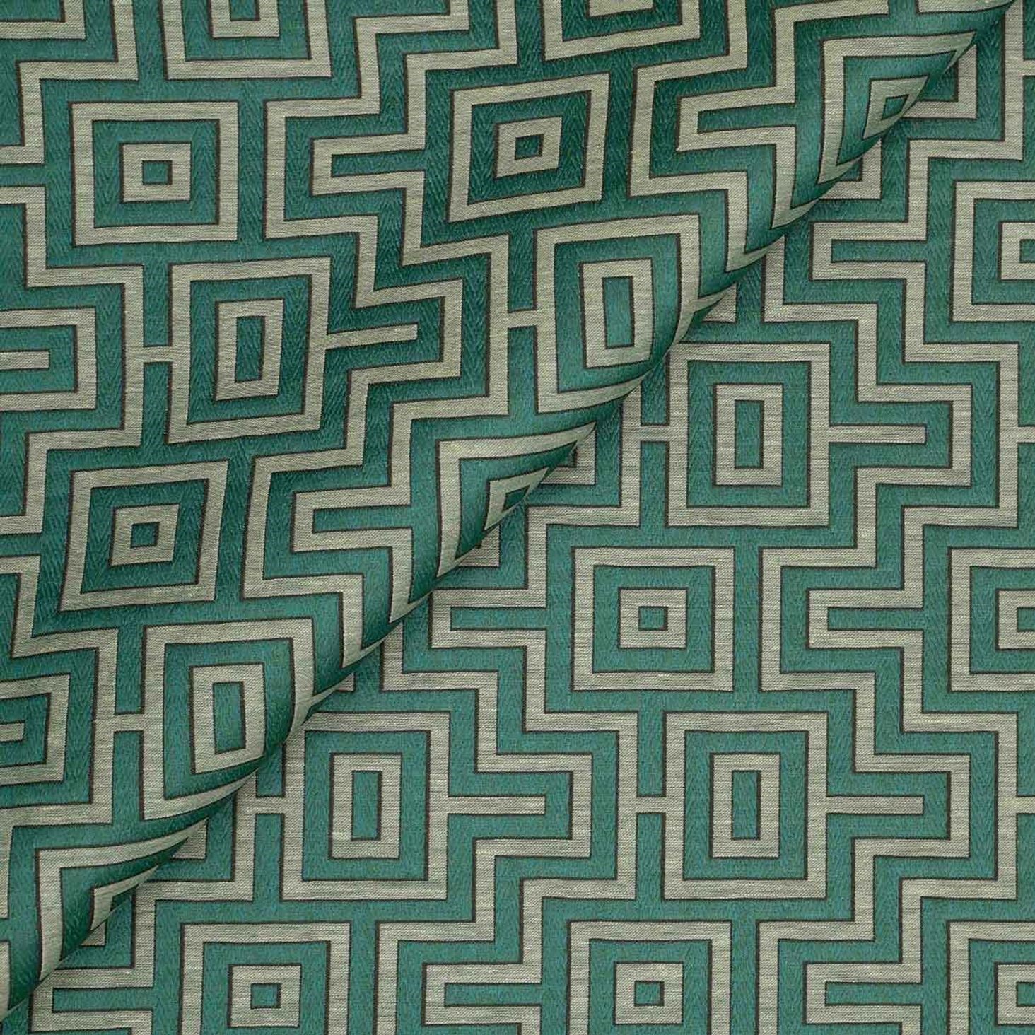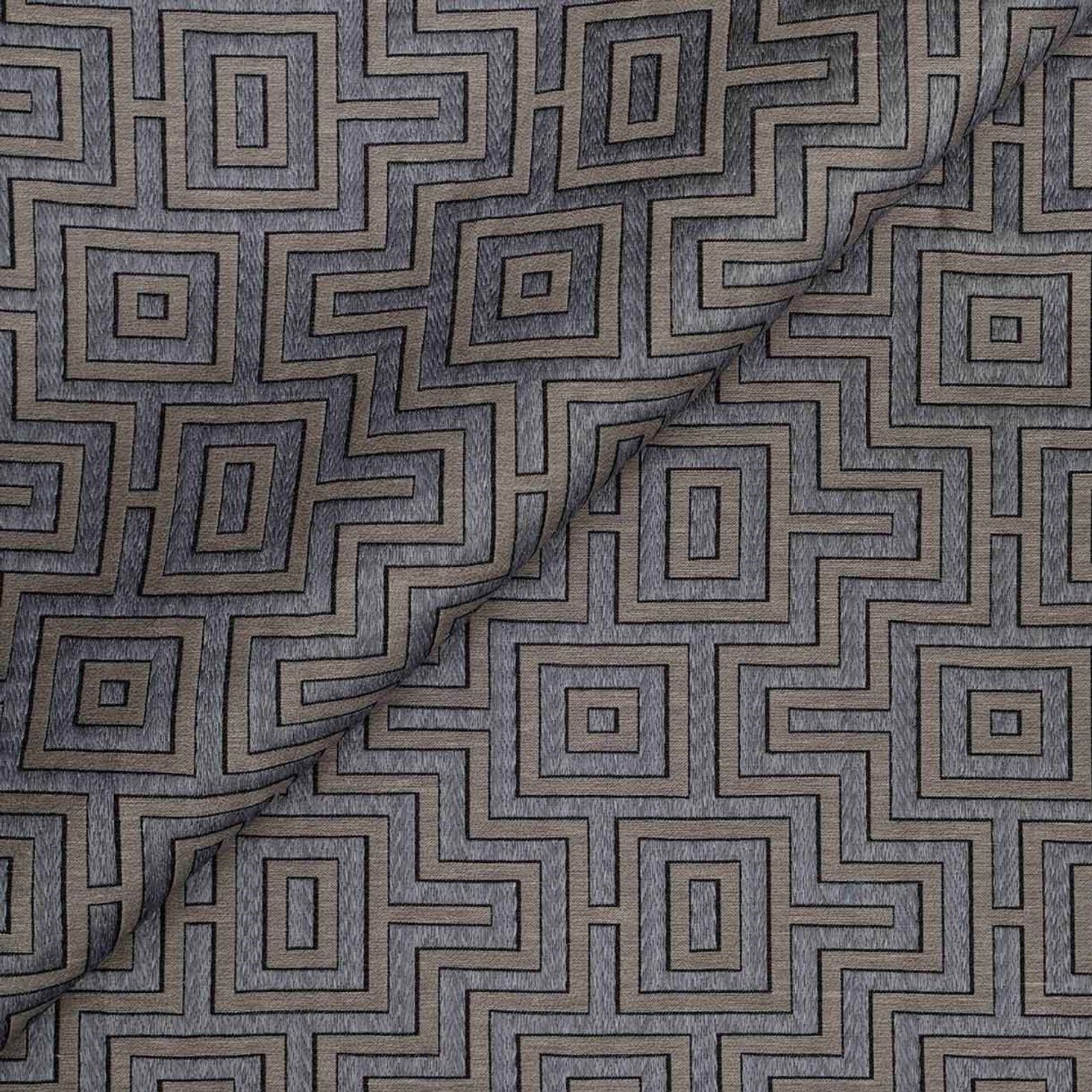 „Fret Maze“, ein exklusiver Deko- und Vorhangstoff von Jim Thompson, besticht durch sein geometrisches Muster und kombiniert Viskose, Polyamid und Leinen. Ideal für Polsterarbeiten und die Gestaltung stilvoller Interieurs, ist er online bei Villakontor erhältlich.