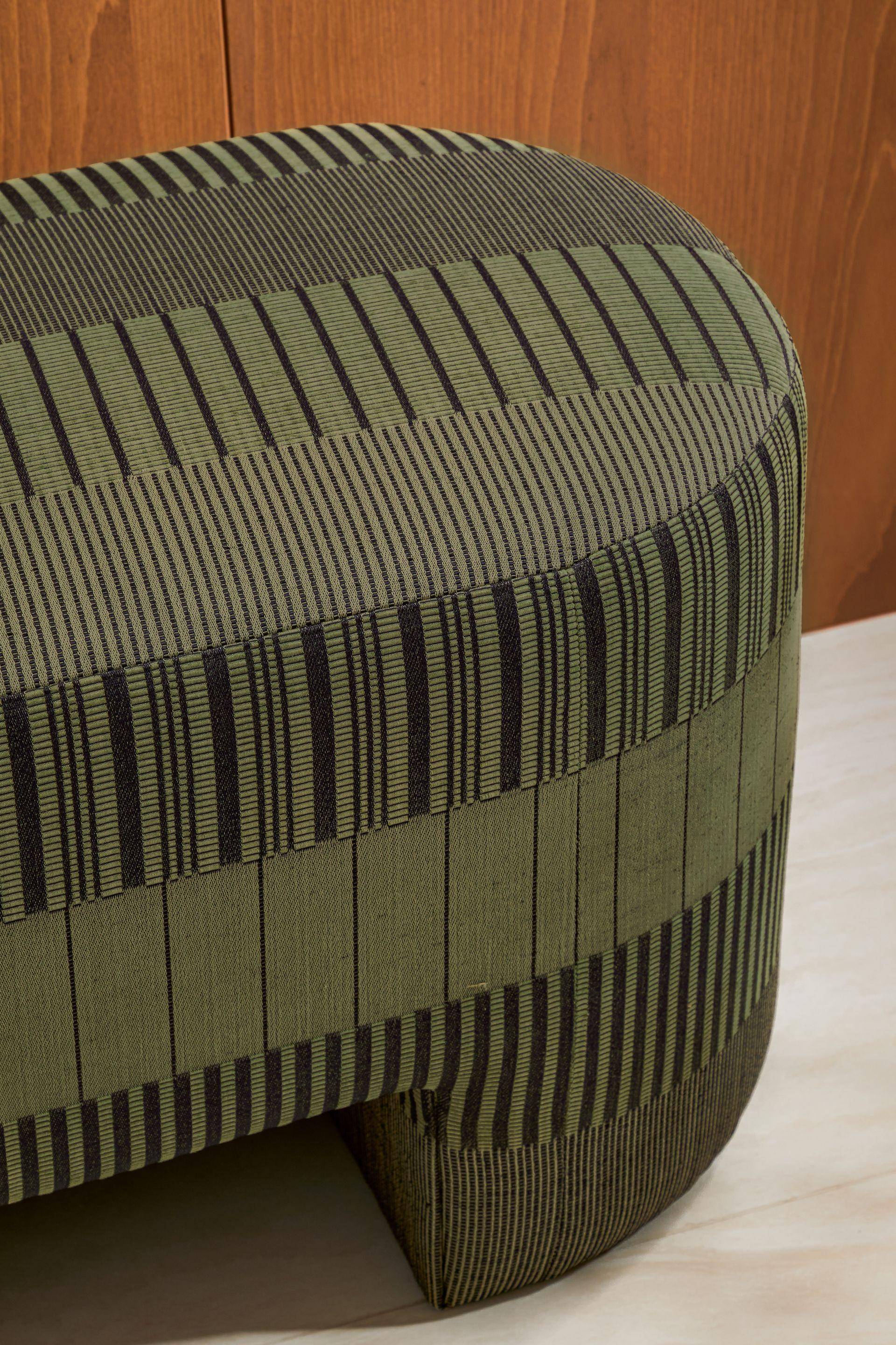 Karri Stripe ist ein Jacquard-Stoff von Jim Thompson, der für Polster, Gardinen, Kissen und Wohnaccessoires entworfen wurde. Das aufwendige Gewebe aus Streifen und Karos erinnert an traditionelle Handwerkskunst und schafft eine vielschichtige Oberfläche mit rustikaler Wärme und einer edlen, handgefertigten Anmutung.