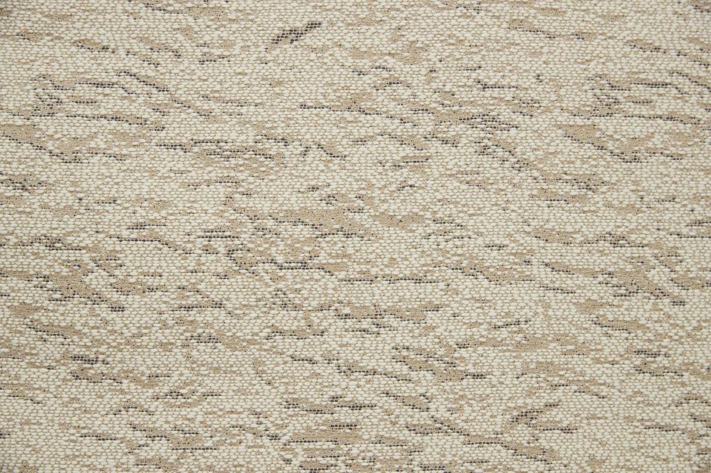 Der Stoff zeigt eine abstrakte und neblige Landschaft aus Bergen und Felsen mit fernem Horizont. Der schimmernde Hintergrund erzeugt einen Rhythmus- und Volumeneffekt, während natürliche Farbtöne und Unregelmäßigkeiten im Gewebe dem Stoff Natürlichkeit und Tiefe verleihen. Die weiche Wollstruktur sorgt für perfekte Drapierung und hohen Komfort.