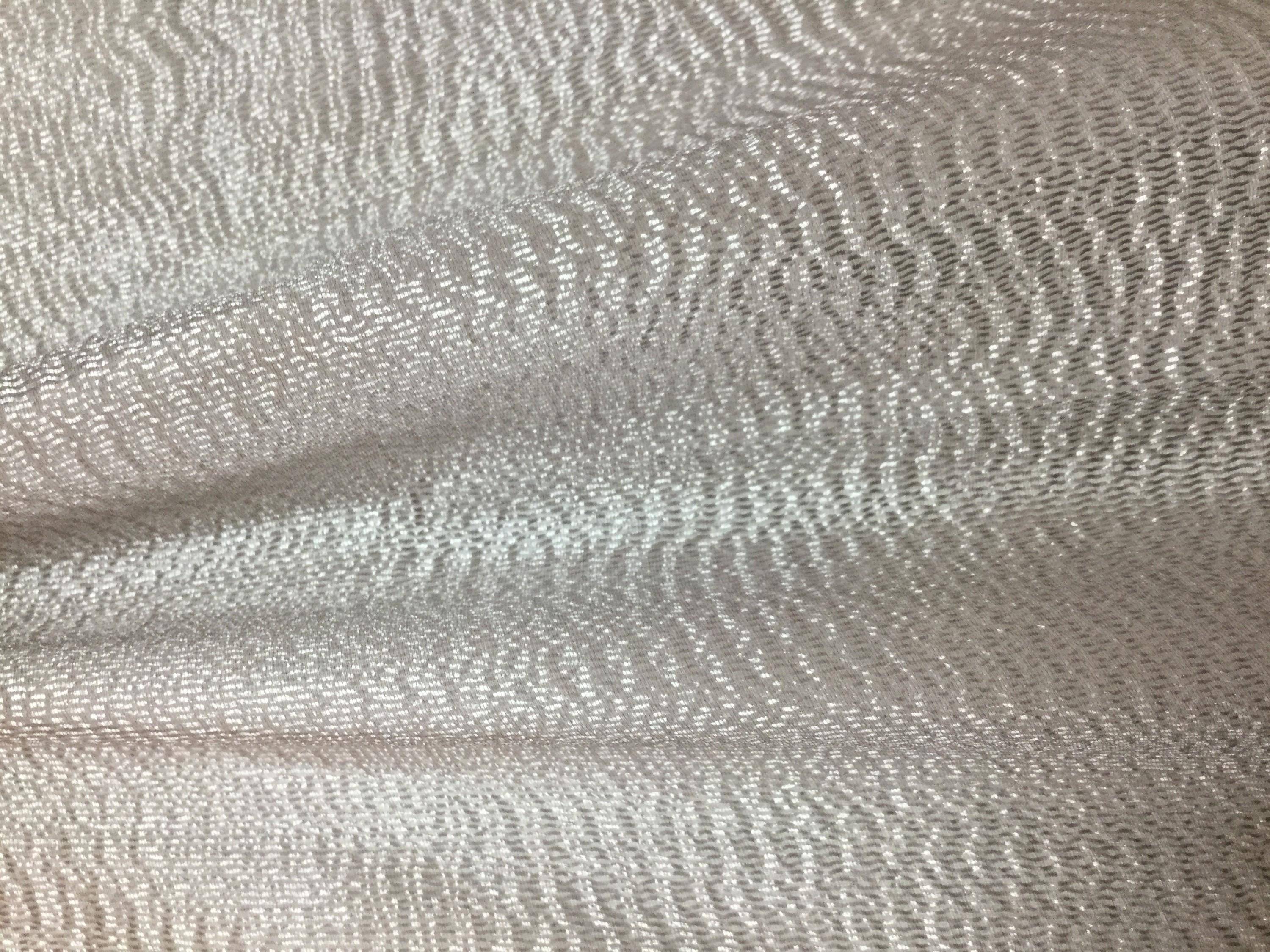 Die textile Oberfläche zeigt eine wellenartige Schimmerstruktur in perlmuttfarbenen Neutraltönen, die subtil das Licht reflektiert und für eine edle, harmonische Wirkung sorgt. Die Kombination aus Weite, Transparenz und dezentem Glanz macht ZEF ideal für Vorhänge, Raumteiler oder dekorative Anwendungen in modernen wie klassischen Interieurs.