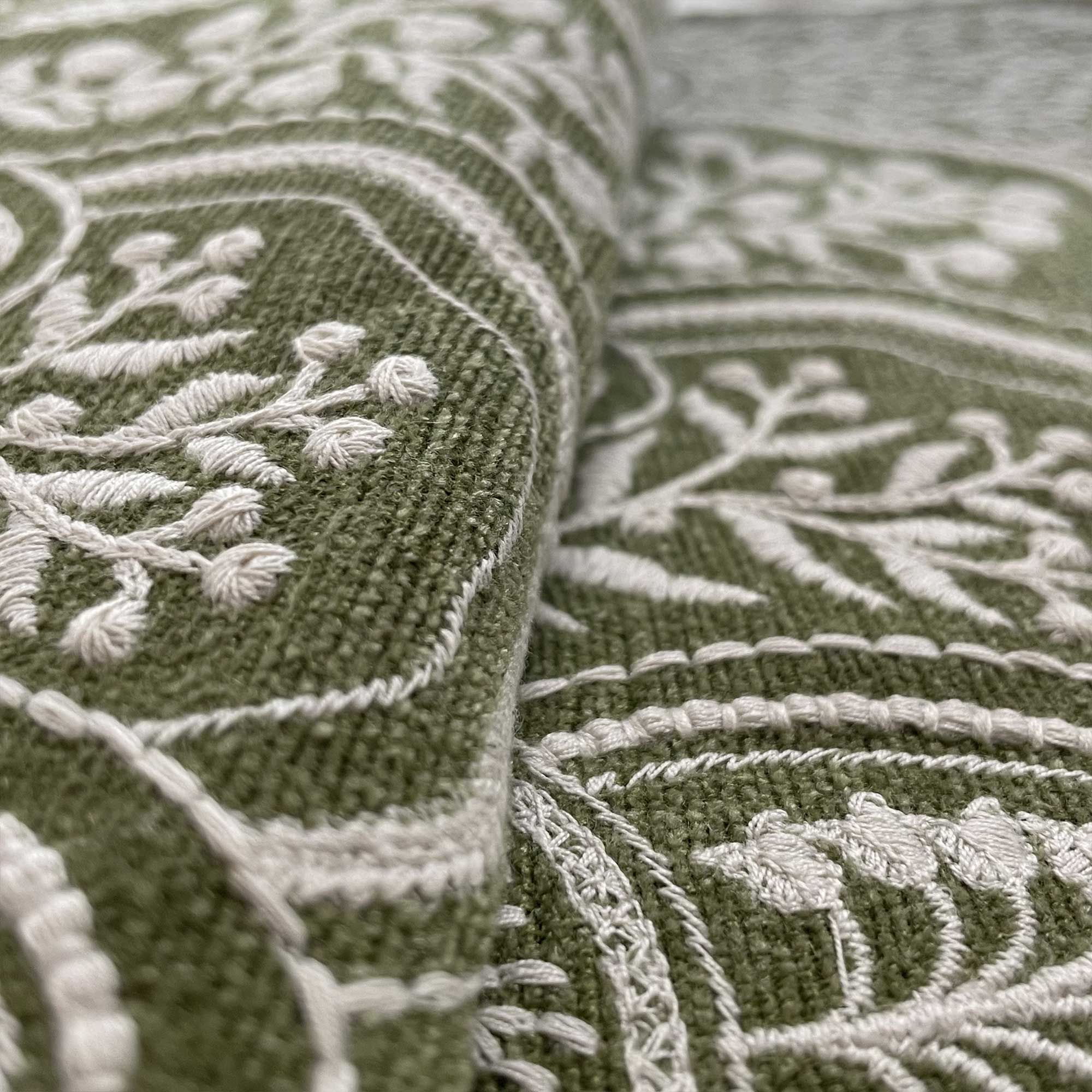 Die dekorative Stickerei, die wie kunstvolle Handarbeit wirkt, hebt diesen Stoff deutlich von der Masse ab. Er fügt sich harmonisch in klassische wie moderne Interieurs ein und überzeugt sowohl in dezenten Farbtönen als auch in kräftigeren Ausführungen.