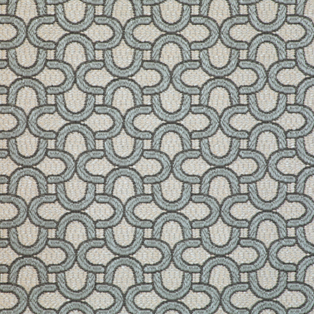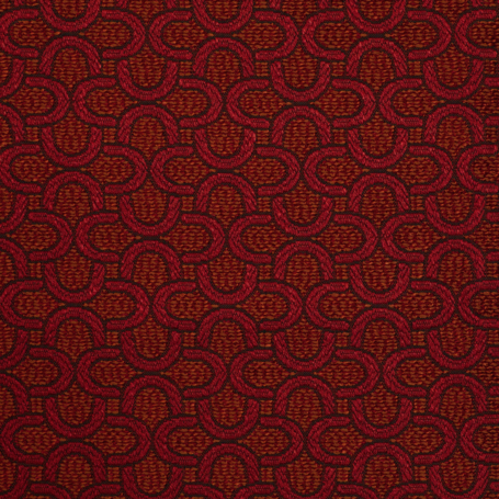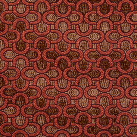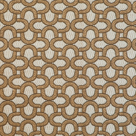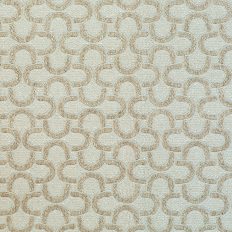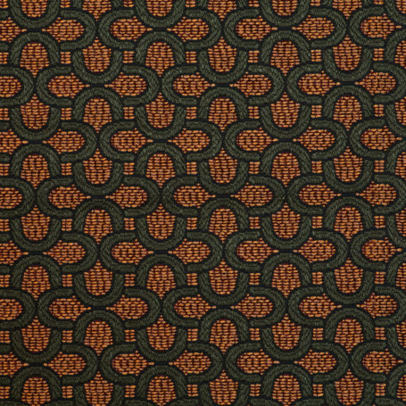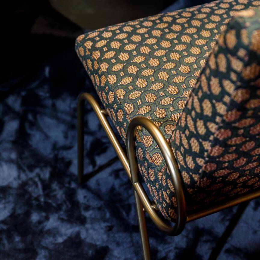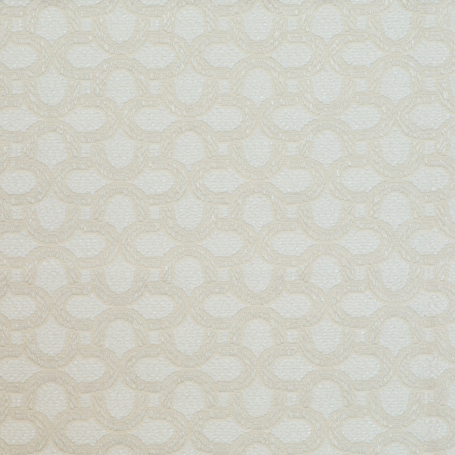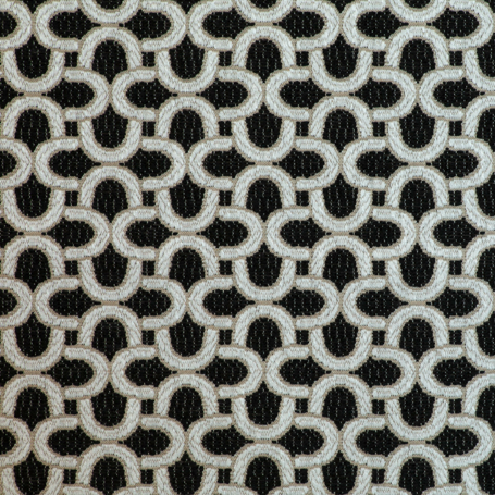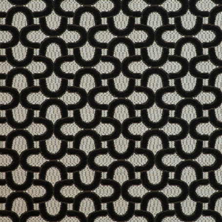 Das markante Muster aus ineinander verschlungenen Halbkreisen erinnert an Fassaden im Bauhaus-Stil mit ihren charakteristischen, abgerundeten Balkonen. Diese klare, rhythmische Gestaltung verleiht dem Stoff eine moderne, strukturierte Optik und macht ihn zur idealen Wahl für stilbewusste Einrichtungskonzepte.