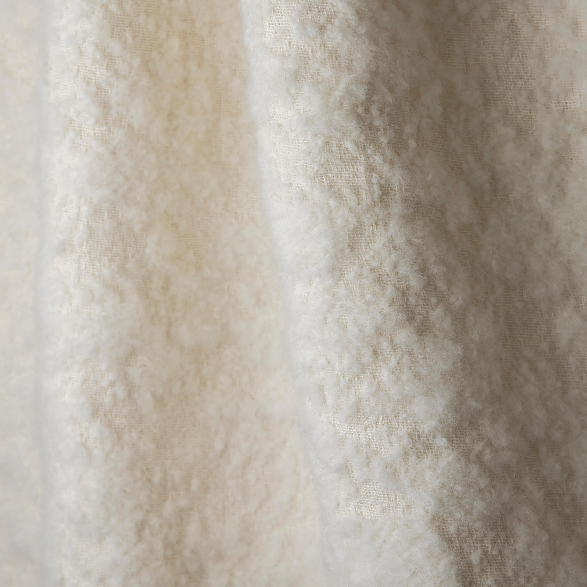 Mit seiner weichen Bouclé-Oberfläche erinnert Nuvole an alpakaartige Texturen und vermittelt ein Gefühl von Geborgenheit. Der Stoff wirkt wie ein schützender Kokon und eignet sich ideal für gemütliche Sitzmöbel sowie stilvolle Vorhänge, die dem Raum eine ruhige und elegante Atmosphäre verleihen.