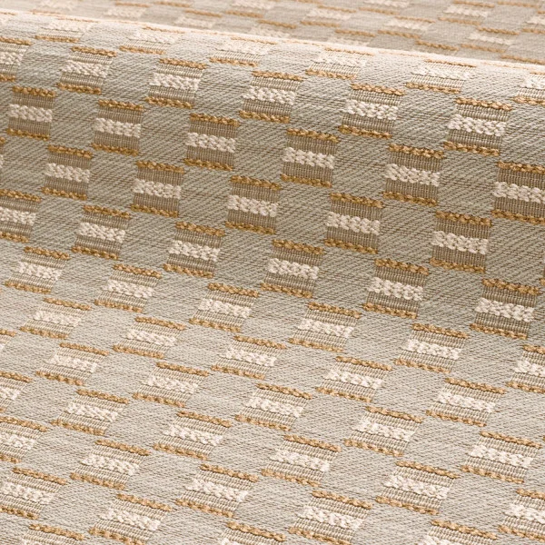 Der Dekorations- und Vorhangstoff Caffé Greco von MISIA Paris ist ein luxuriöser Jacquard, der durch seine raffinierte Geometrie und seine elegante Lichtwirkung beeindruckt. Das markante Schachbrettmuster entsteht durch eine besondere Webtechnik, die kontinuierlich mit Licht und Schatten spielt und dem Stoff eine lebendige, hochwertige Oberfläche verleiht.