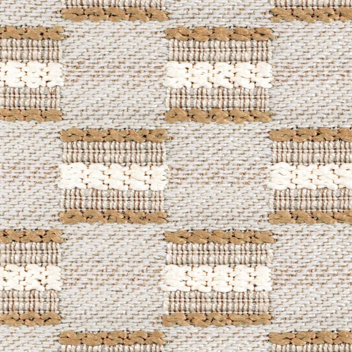 Ein feiner bronze-farbener Rand unterstreicht die elegante Struktur des Designs und verleiht dem Stoff eine zusätzliche visuelle Tiefe. Dadurch wirkt das Textil besonders edel und eignet sich ideal für stilvolle Interior-Projekte, bei denen dekorative Stoffe eine zentrale Rolle spielen.