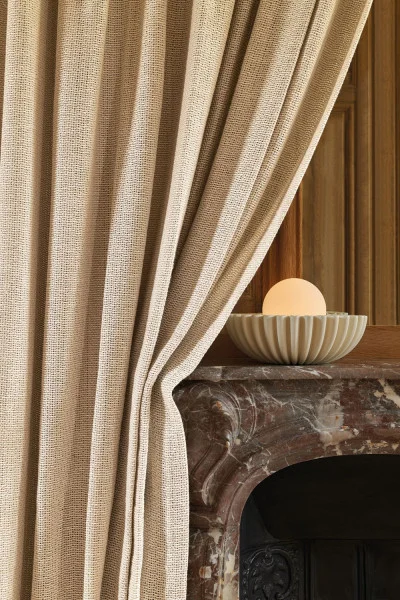 Zwischen roher Qualität und reiner Zartheit ist der überbreite „De mille feux“-Stoff das Ergebnis der Verschmelzung von technischem Know-how und textiler Tradition. Seine Zusammensetzung aus Leinen und großen natürlichen Baumwollfasern verleiht ihm einen unvergleichlich handwerklichen und eleganten Look. Ein dekoratives Garn mit subtilen metallischen Akzenten durchzieht die luftigen Schnürungen, hebt das Tuch an und macht es noch moderner. Er ist in zwei exklusiven Farben erhältlich, Elfenbein und Gold, um all Ihre Fenster mit Finesse zu schmücken.